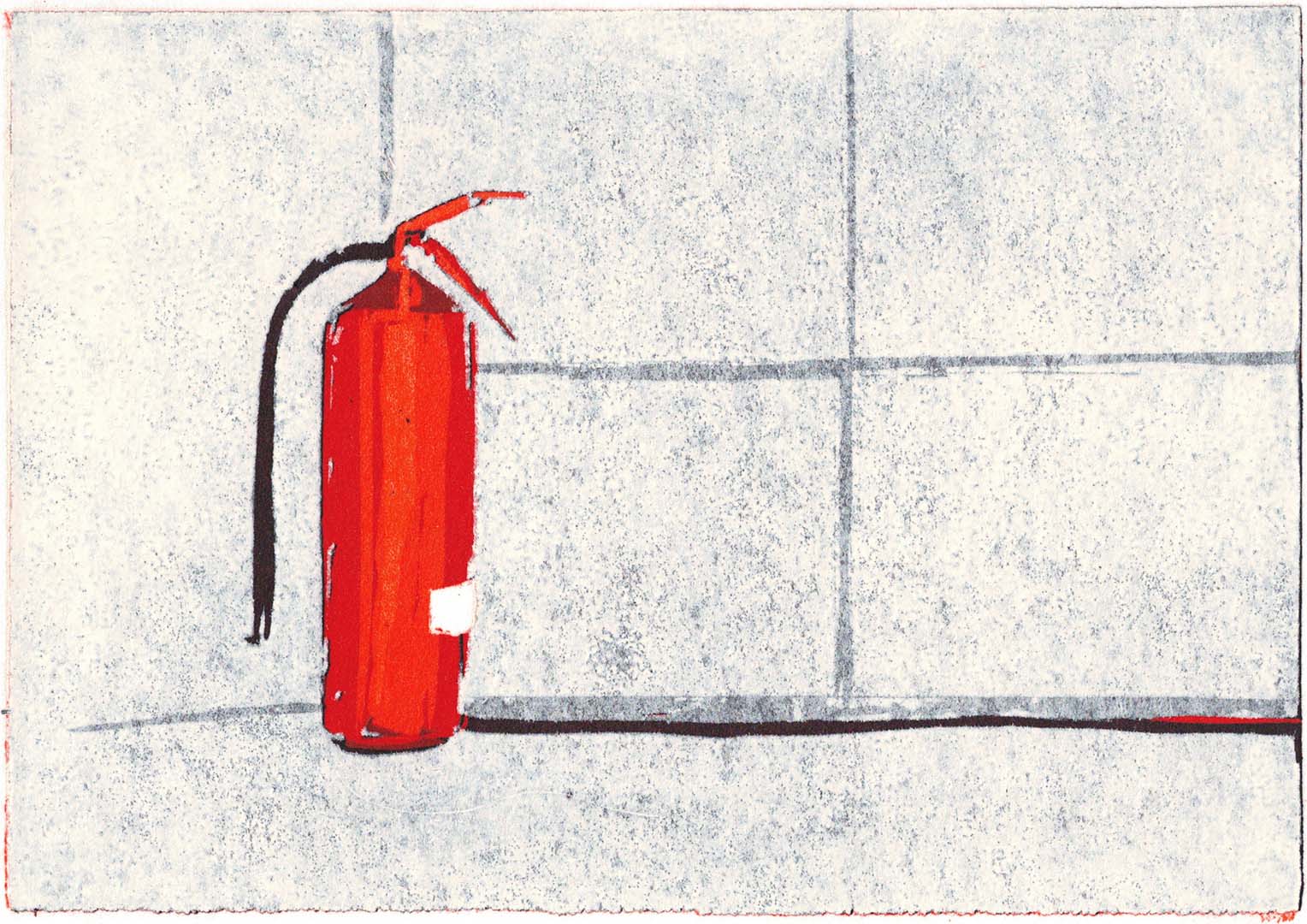 Feuerlöscher · 2021 · Farbholzschnitt auf Japanpapier · 15 × 21 cm