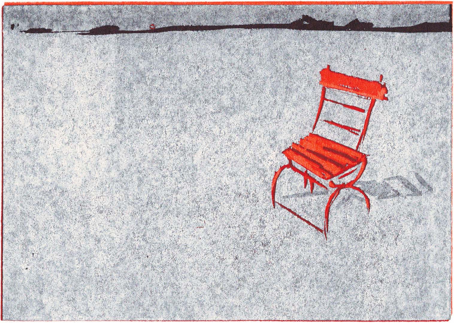 Gartenstuhl · 2021 · Farbholzschnitt auf Japanpapier · 15 × 21 cm