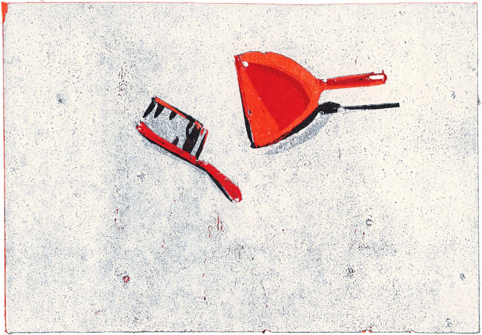 Kehrblech & Besen · 2021 · Farbholzschnitt auf Japanpapier · 15 × 21 cm