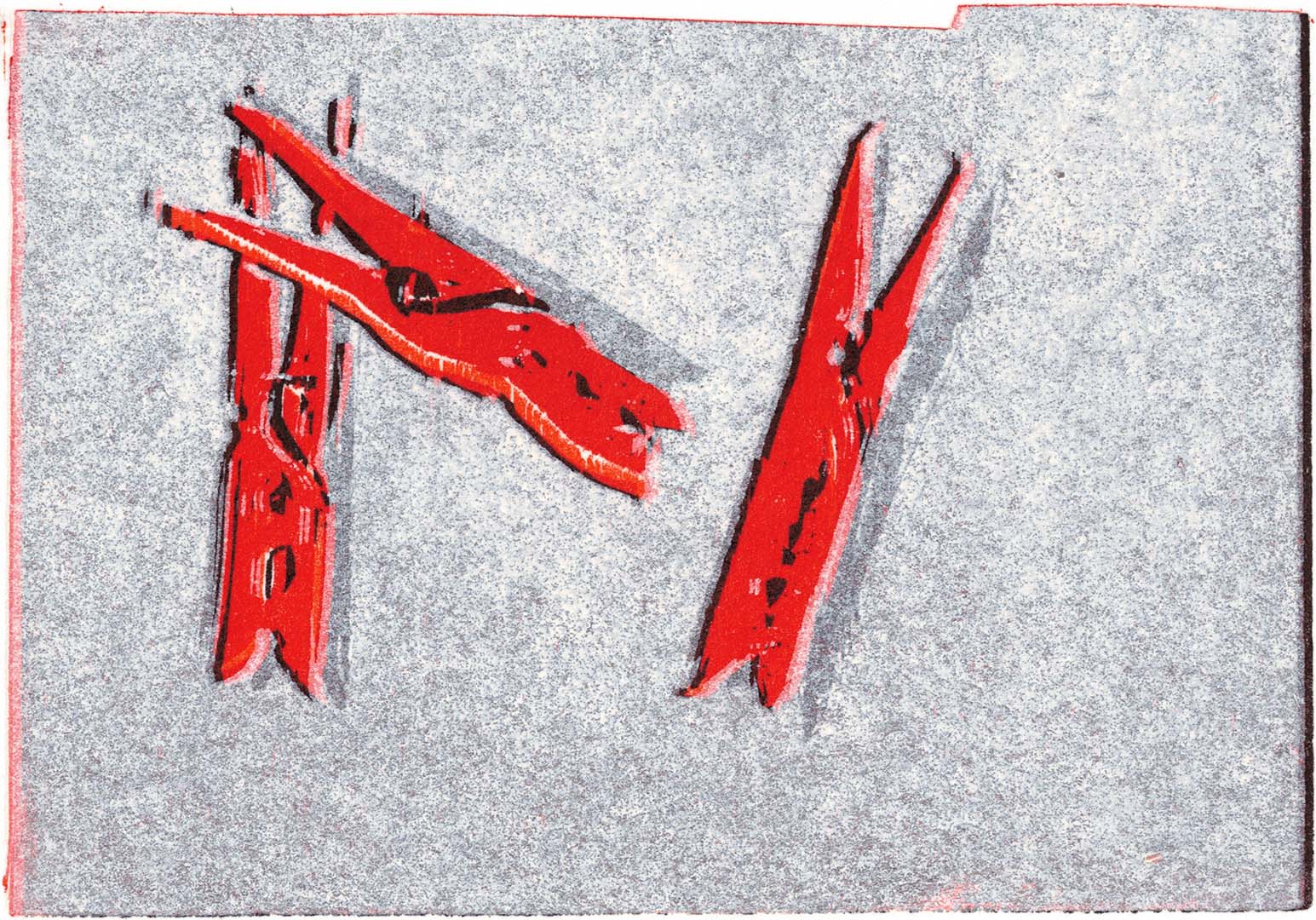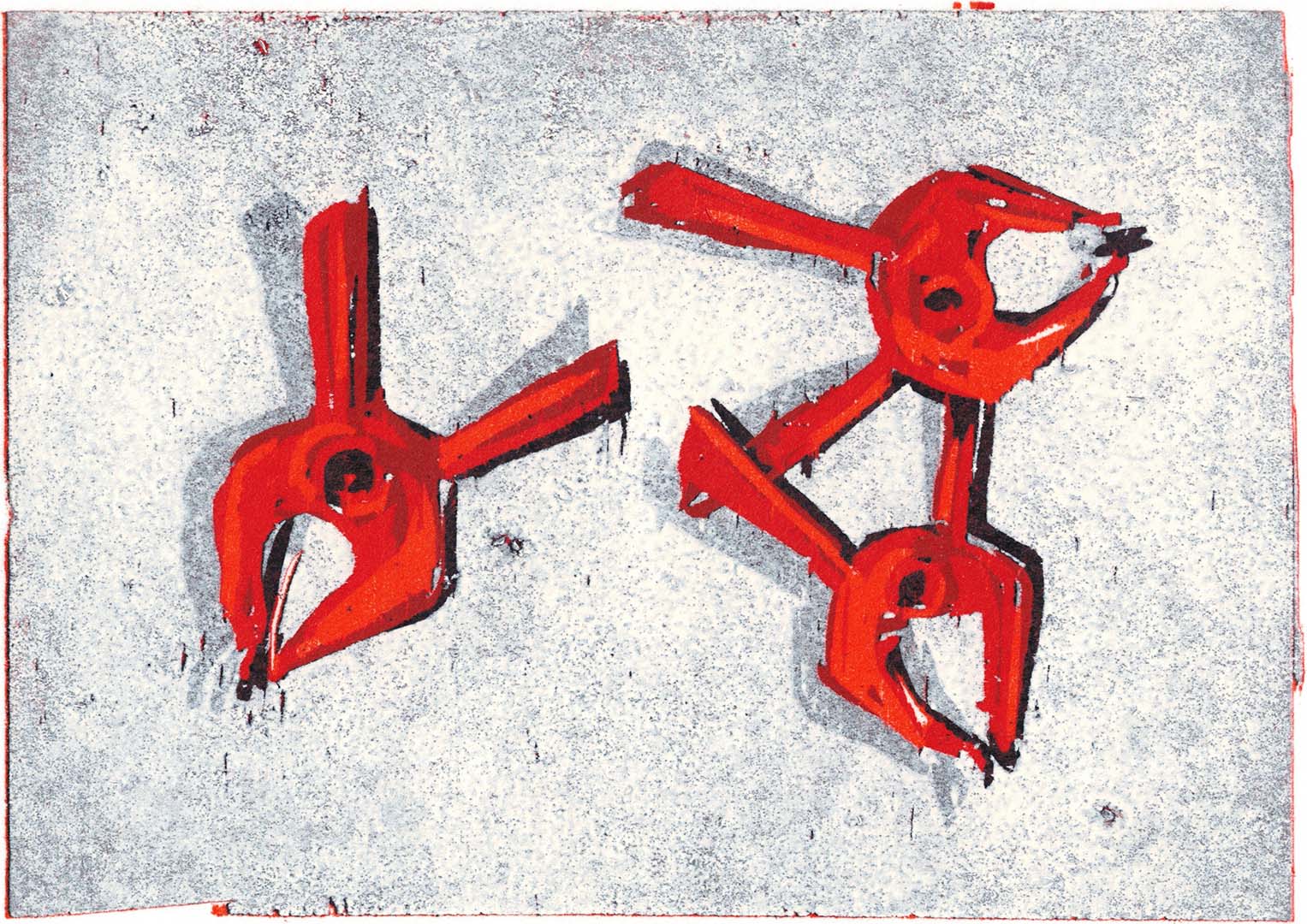 Klemmzwingen · 2021 · Farbholzschnitt auf Japanpapier · 15 × 21 cm