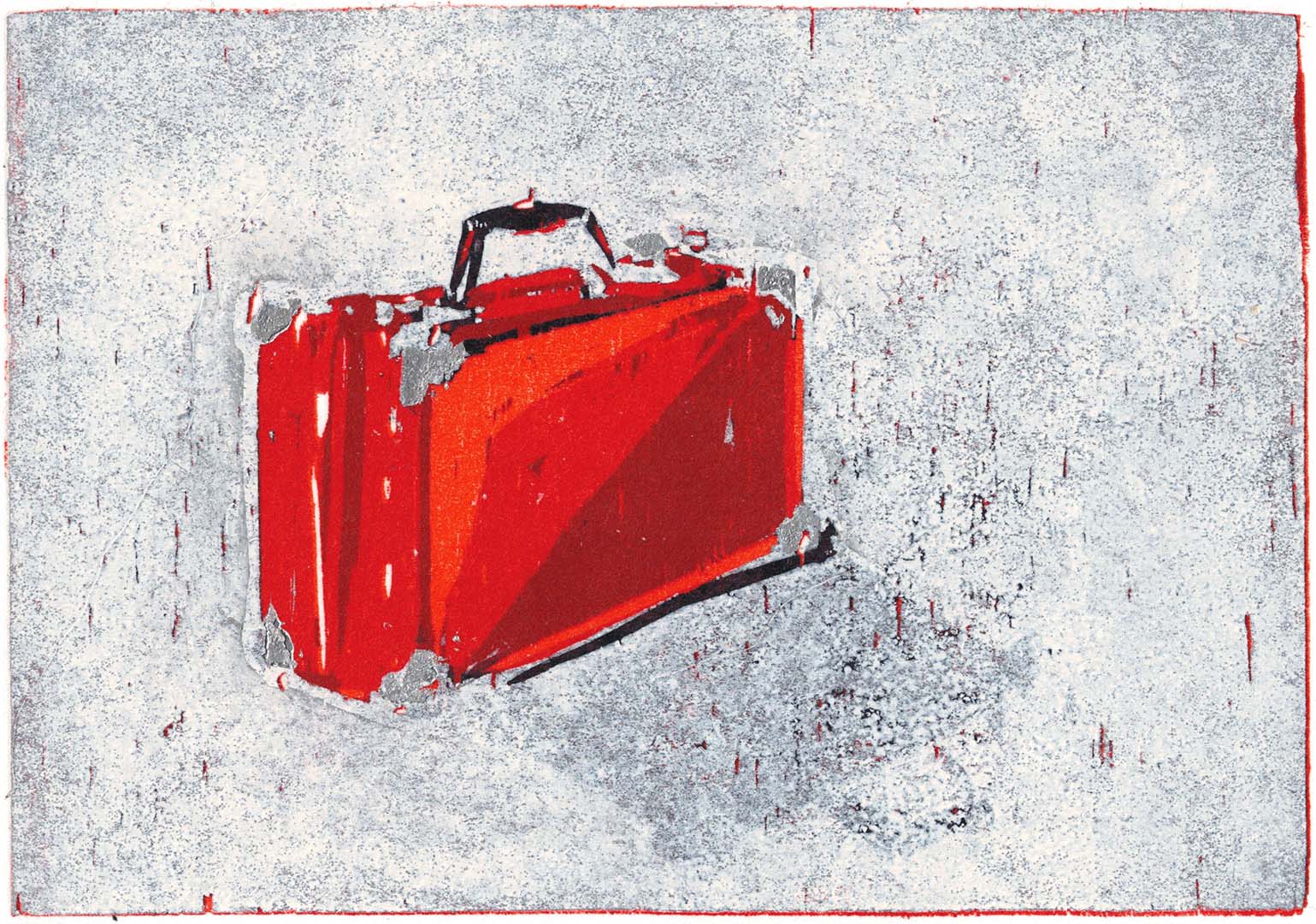 Koffer · 2021 · Farbholzschnitt auf Japanpapier · 15 × 21 cm