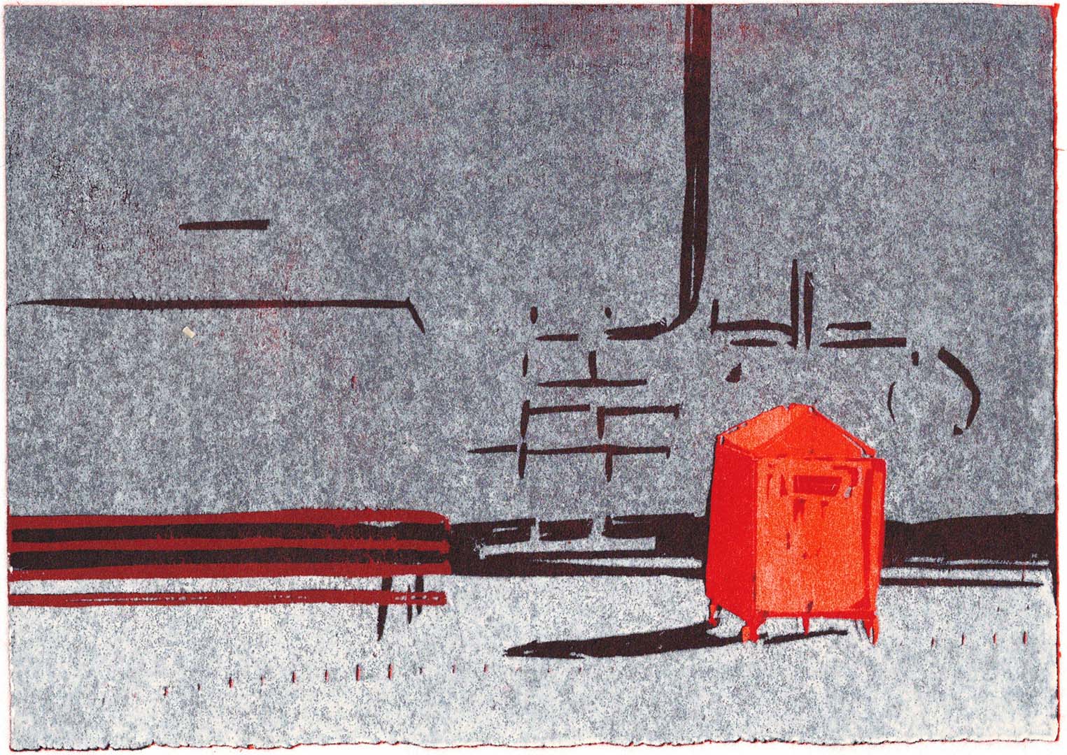 Mülleimer · 2021 · Farbholzschnitt auf Japanpapier · 15 × 21 cm