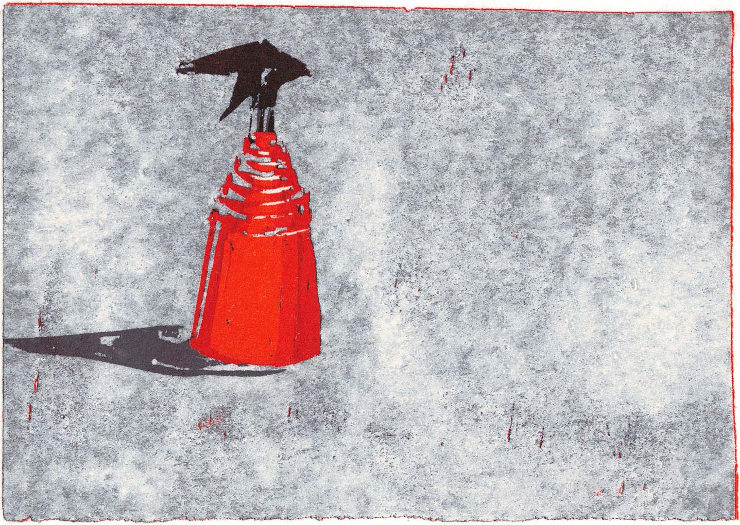 Sprühflasche · 2021 · Farbholzschnitt auf Japanpapier · 15 × 21 cm