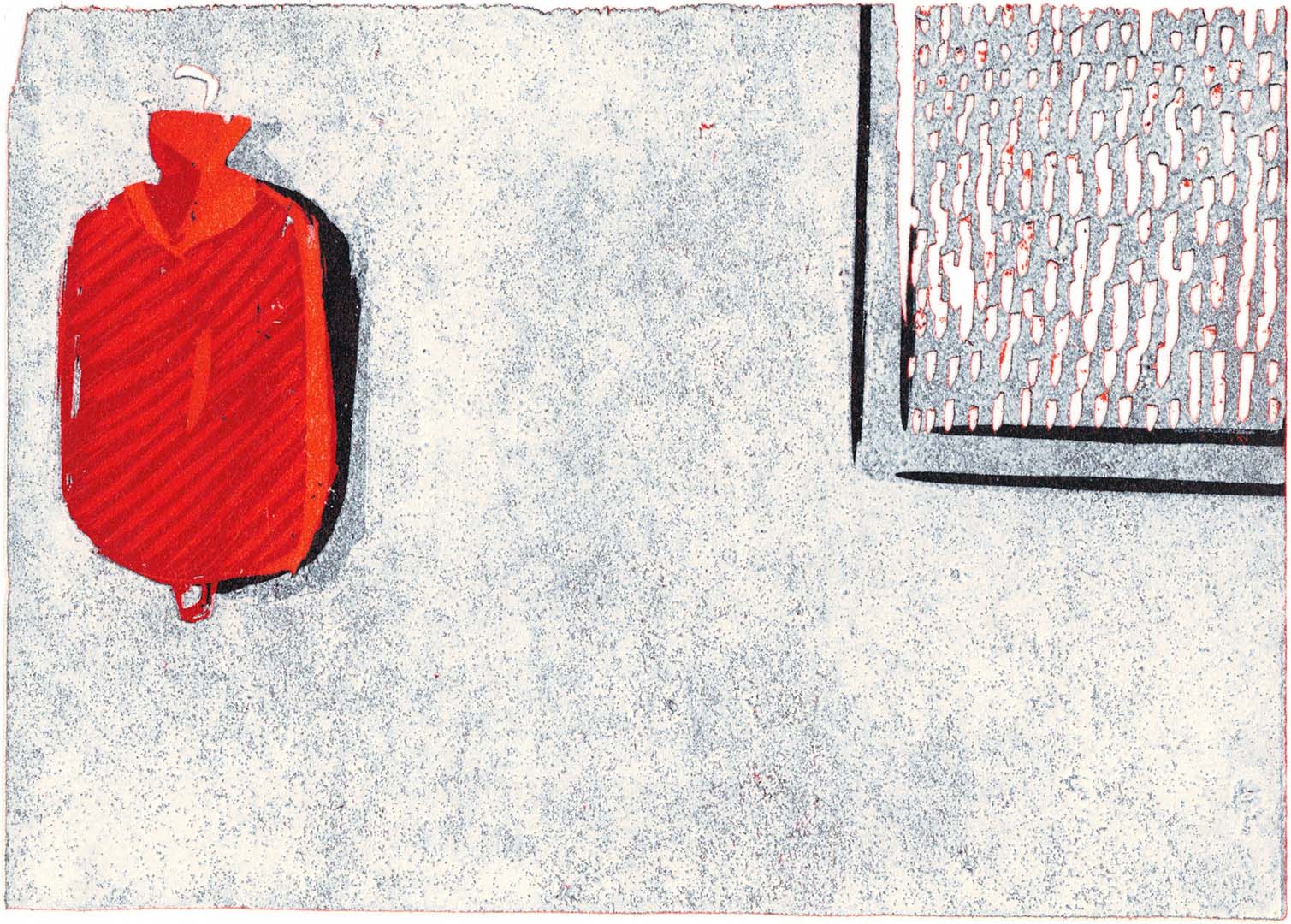 Wärmflasche · 2021 · Farbholzschnitt auf Japanpapier · 15 × 21 cm