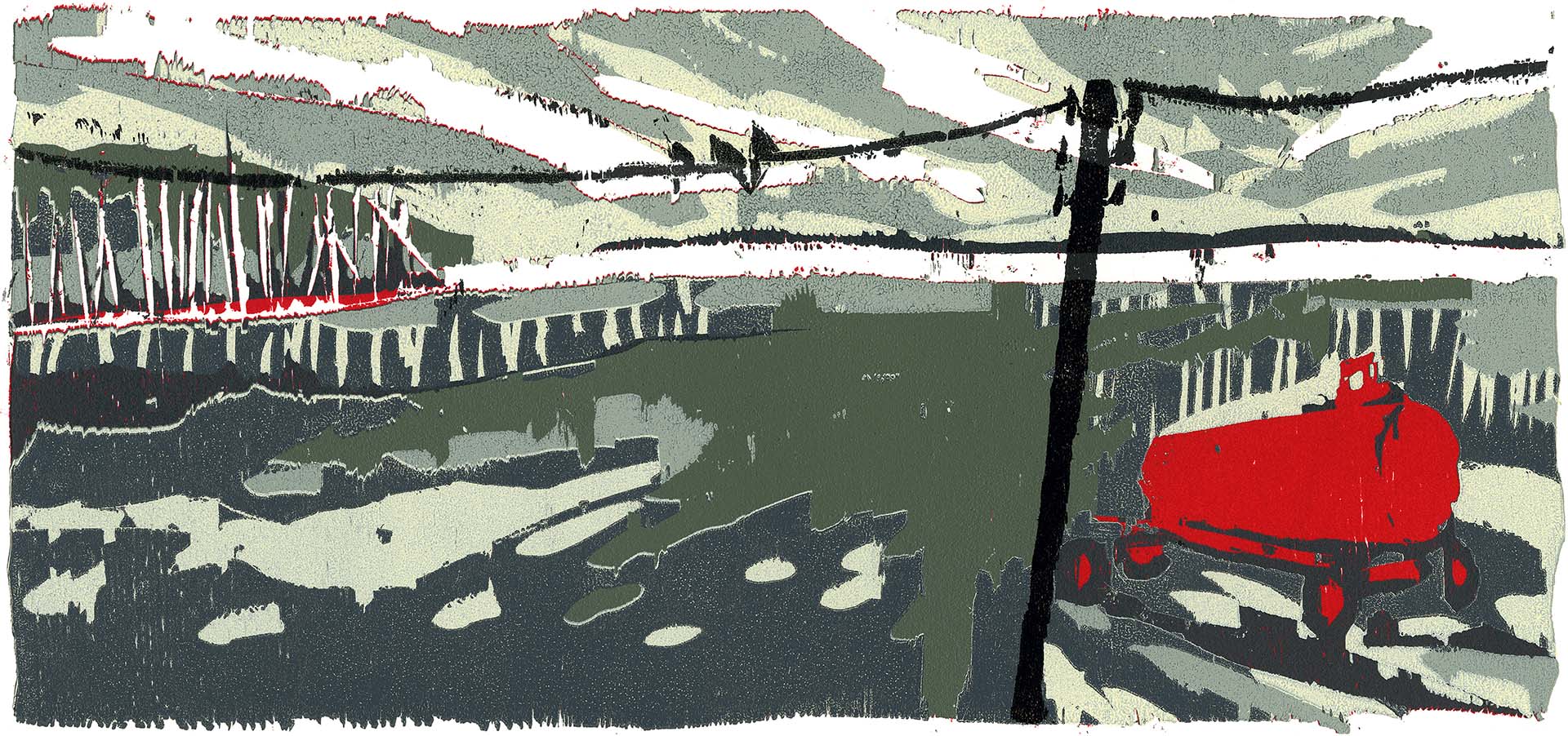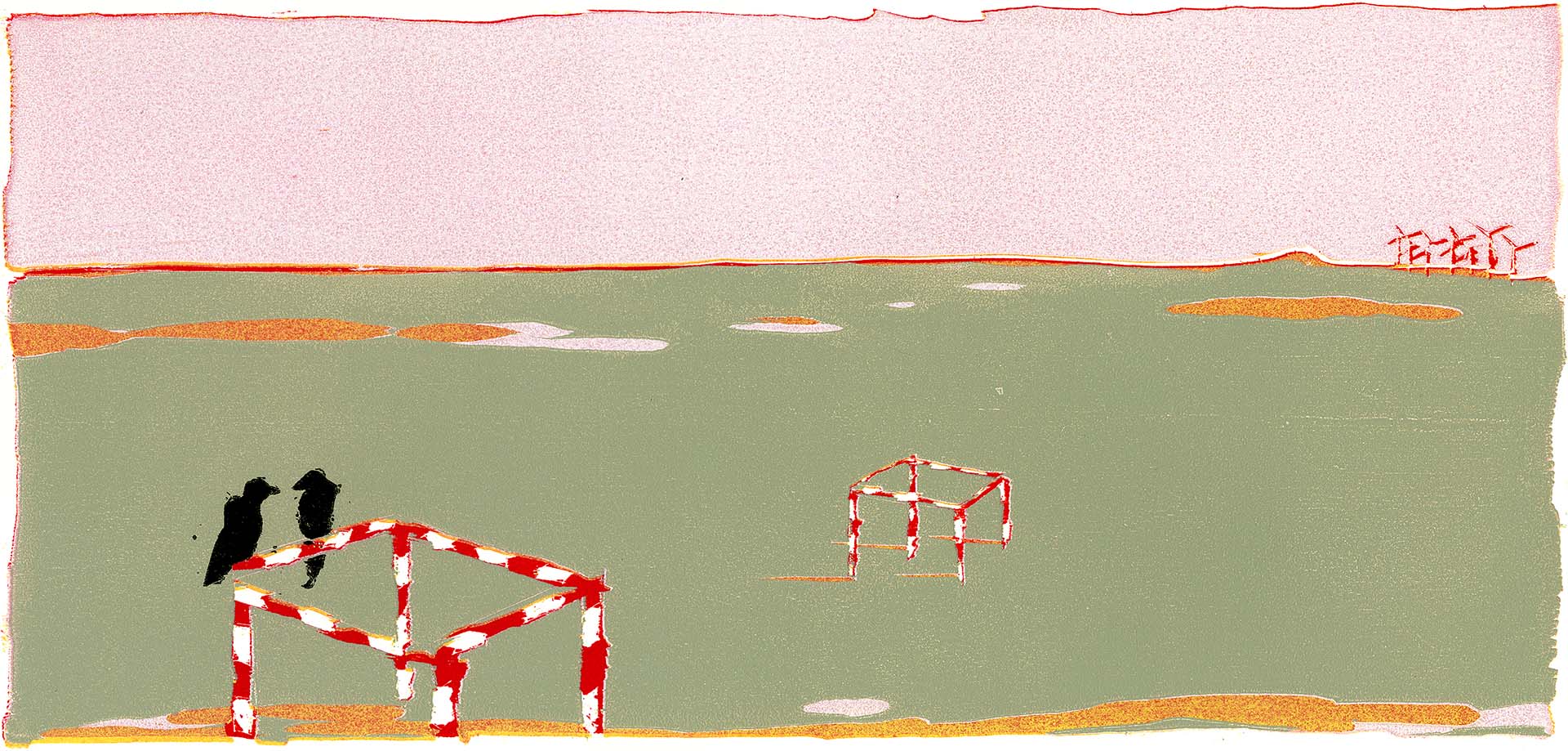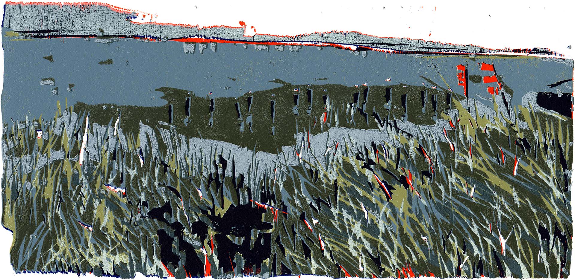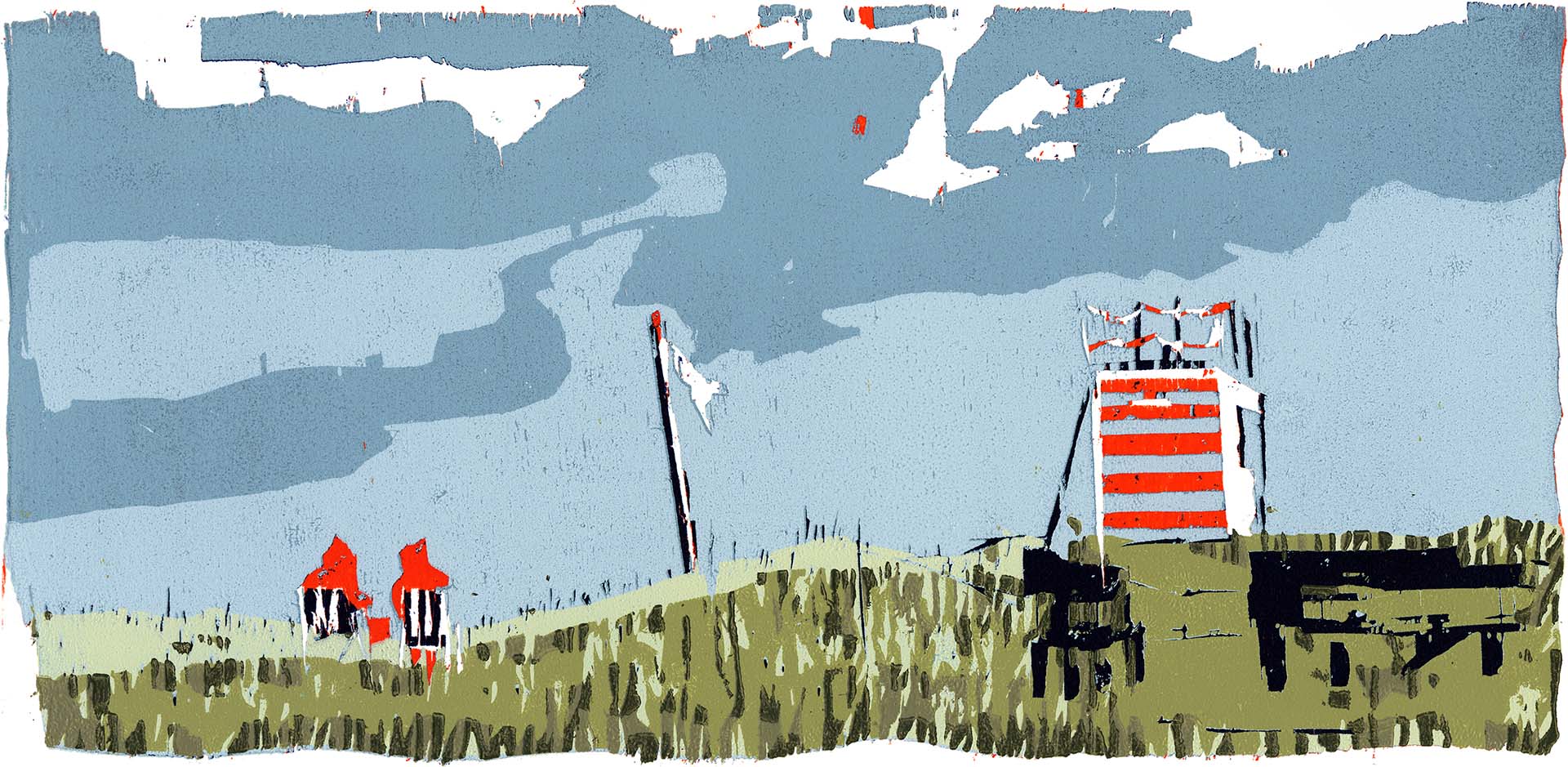 Strandausgang Nr. 8 · 2012 · Farbholzschnitt auf Büttenpapier · 20 × 42 cm Strandkörbe · 2012 · Farbholzschnitt auf Büttenpapier · 20 × 42 cm Zwei Krähen · 2012 · Farbholzschnitt auf Büttenpapier · 20 × 42 cm Tankwagen · 2012 · Farbholzschnitt auf Büttenpapier · 20 × 42 cm Bodenwalze · 2012 · Farbholzschnitt auf Büttenpapier · 20 × 42 cm Bagger & Wind · 2012 · Farbholzschnitt auf Büttenpapier · 20 × 42 cm Schilf · 2012 · Farbholzschnitt auf Büttenpapier · 20 × 42 cm Kran · 2012 · Farbholzschnitt auf Büttenpapier · 20 × 42 cm Heuwagen · 2012 · Farbholzschnitt auf Büttenpapier · 20 × 42 cm Zirkus · 2012 · Farbholzschnitt auf Büttenpapier · 20 × 42 cm Roter Riese · 2012 · Farbholzschnitt auf Büttenpapier · 20 × 42 cm