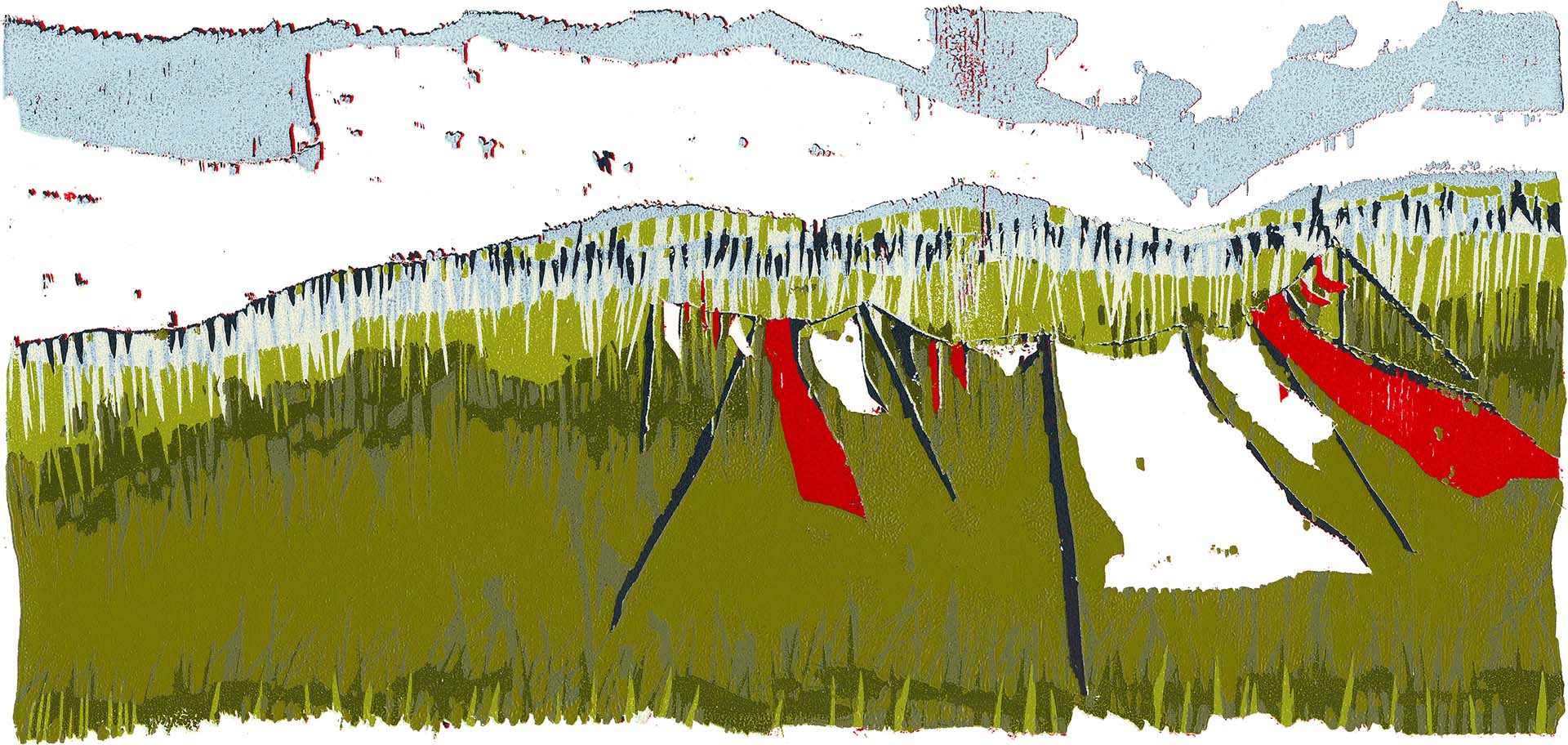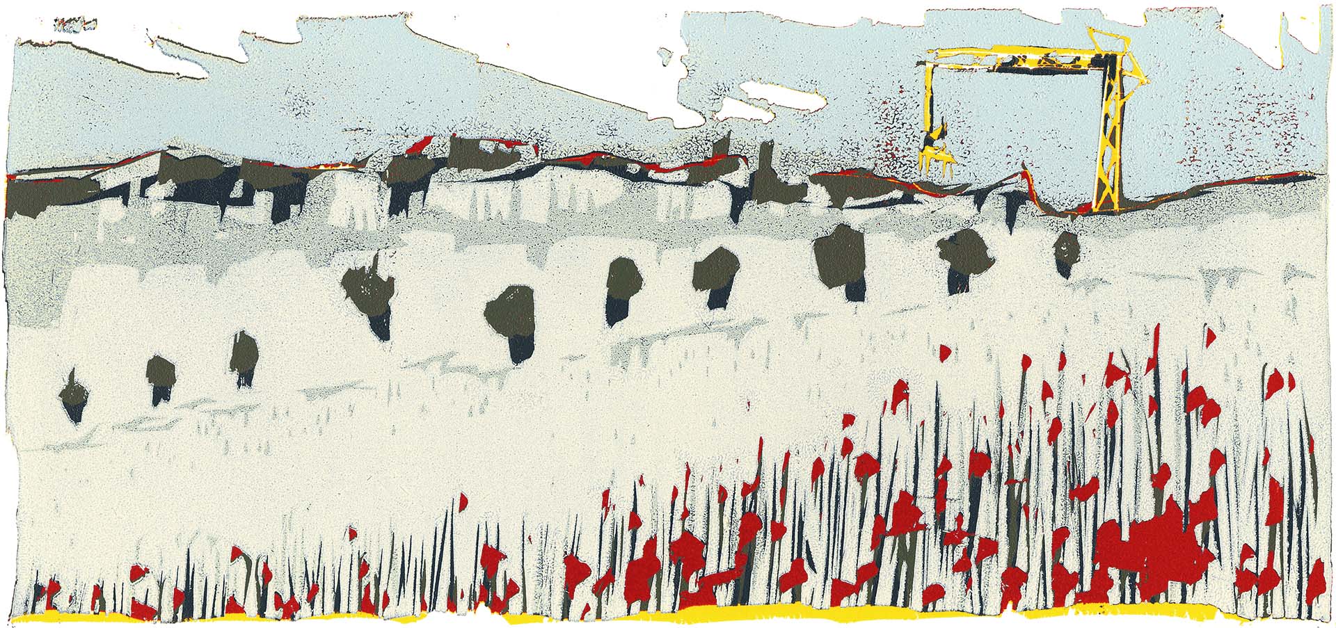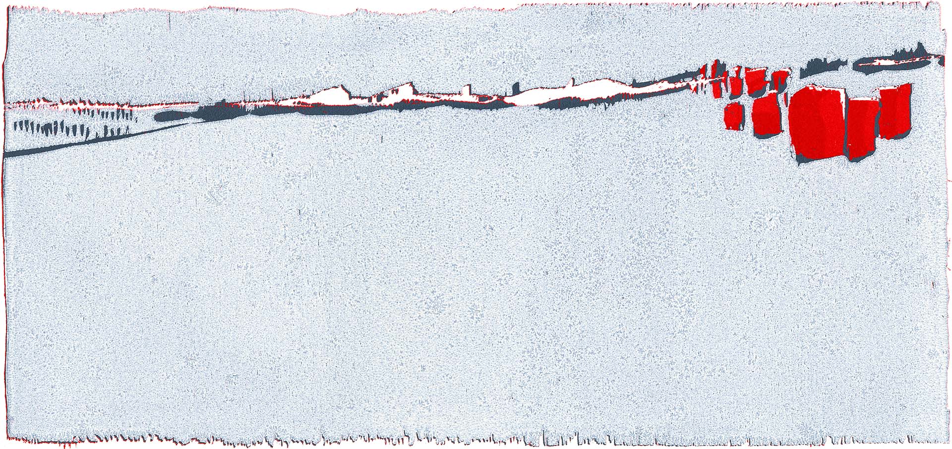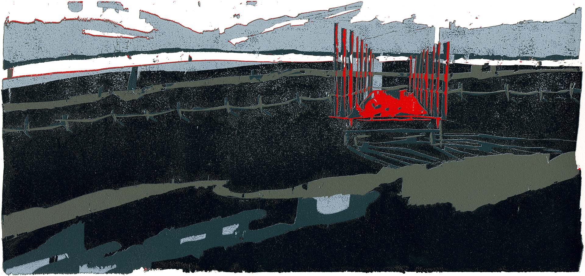 Strandausgang Nr. 8 · 2012 · Farbholzschnitt auf Büttenpapier · 20 × 42 cm Strandkörbe · 2012 · Farbholzschnitt auf Büttenpapier · 20 × 42 cm Zwei Krähen · 2012 · Farbholzschnitt auf Büttenpapier · 20 × 42 cm Tankwagen · 2012 · Farbholzschnitt auf Büttenpapier · 20 × 42 cm Bodenwalze · 2012 · Farbholzschnitt auf Büttenpapier · 20 × 42 cm Bagger & Wind · 2012 · Farbholzschnitt auf Büttenpapier · 20 × 42 cm Schilf · 2012 · Farbholzschnitt auf Büttenpapier · 20 × 42 cm Kran · 2012 · Farbholzschnitt auf Büttenpapier · 20 × 42 cm Heuwagen · 2012 · Farbholzschnitt auf Büttenpapier · 20 × 42 cm Zirkus · 2012 · Farbholzschnitt auf Büttenpapier · 20 × 42 cm Roter Riese · 2012 · Farbholzschnitt auf Büttenpapier · 20 × 42 cm