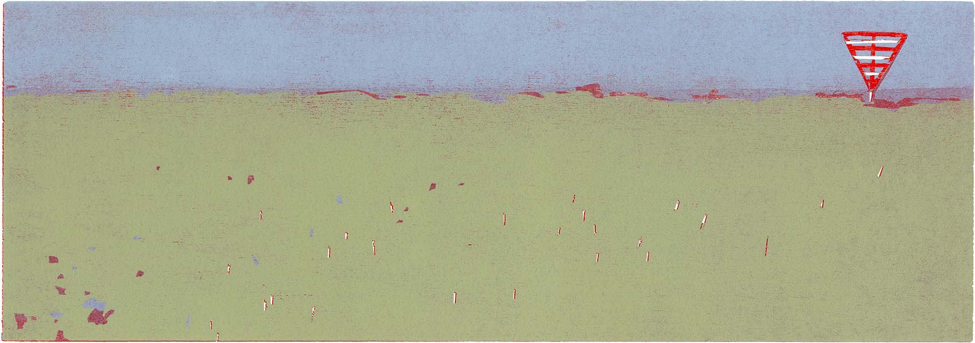Fahrwasserzeichen · 2018 · Farbholzschnitt · 21 × 60 cm