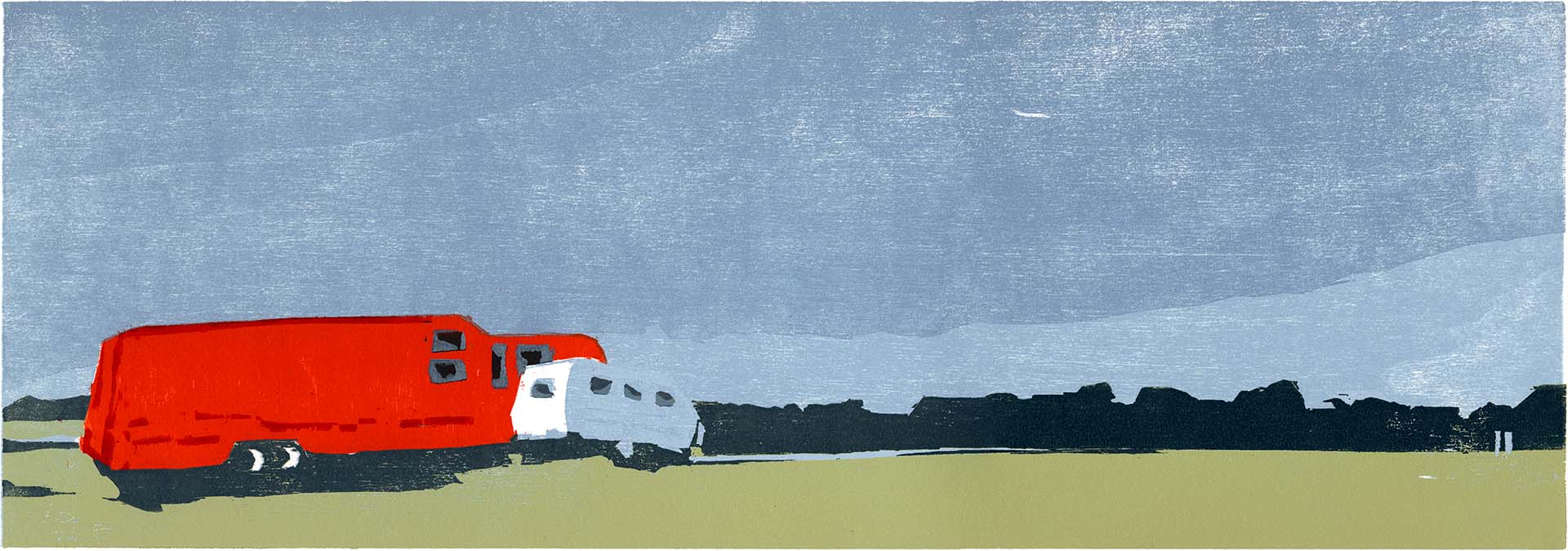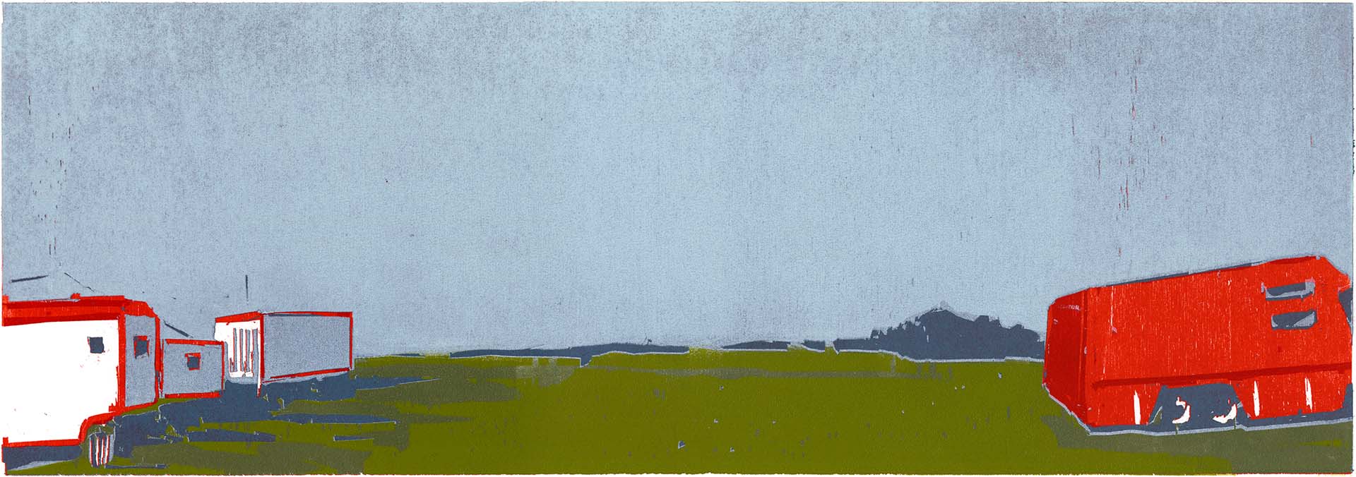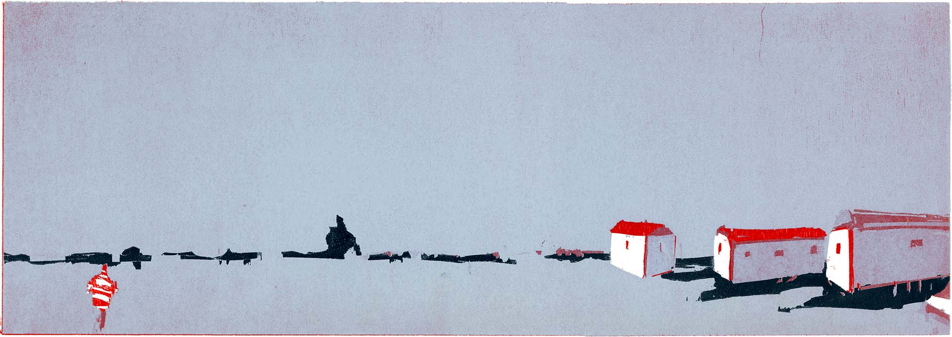 Rettungsstation · 2018 · Farbholzschnitt · 21 × 60 cm