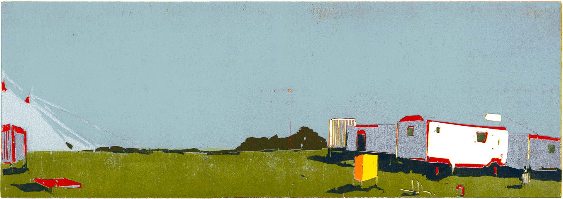 Insel-Zirkus II · 2018 · Farbholzschnitt · 21 × 60 cm
