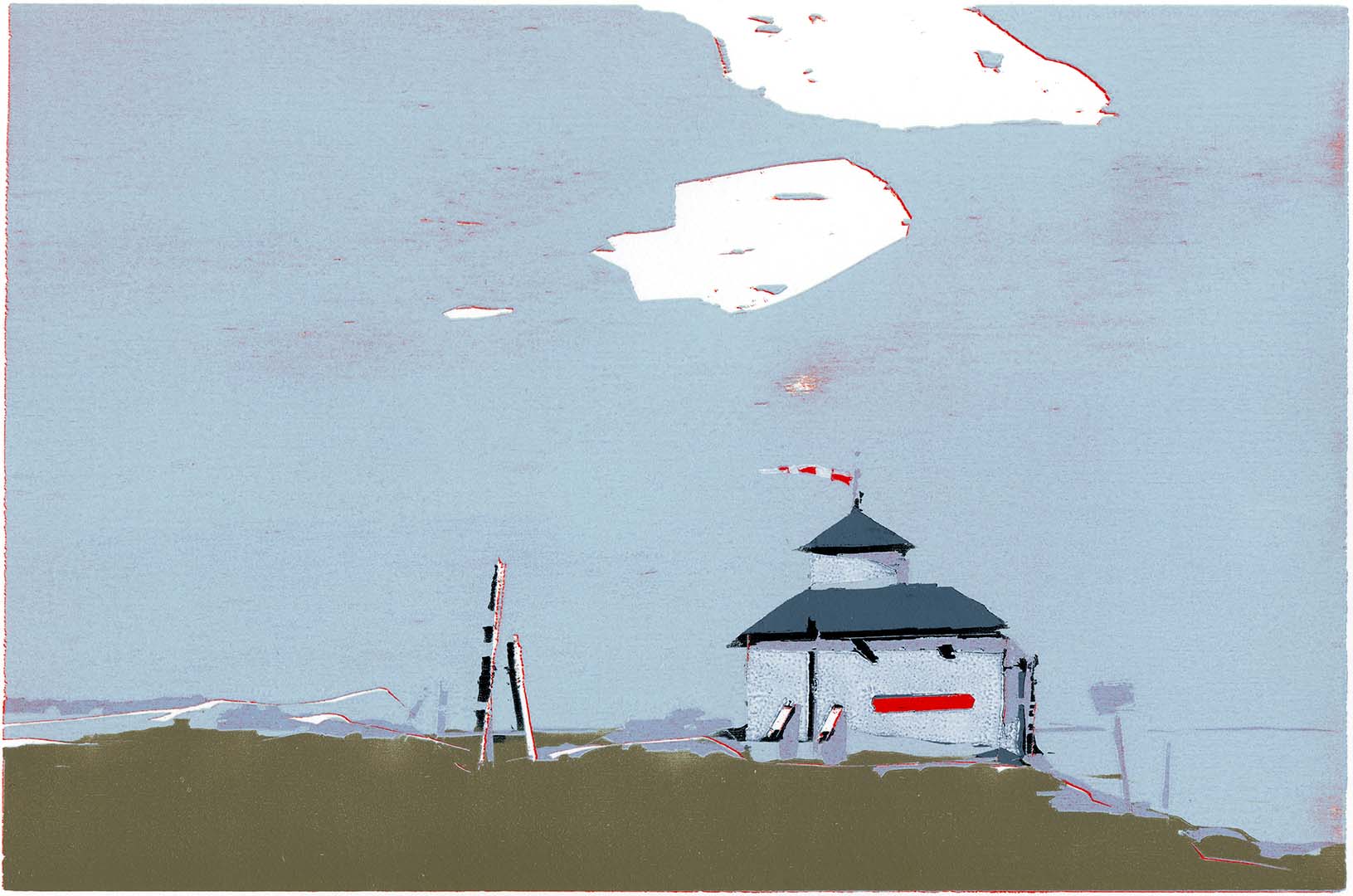 Rettungstation Kampen · 2021 · Farbholzschnitt auf Büttenpapier · 55 × 75 cm