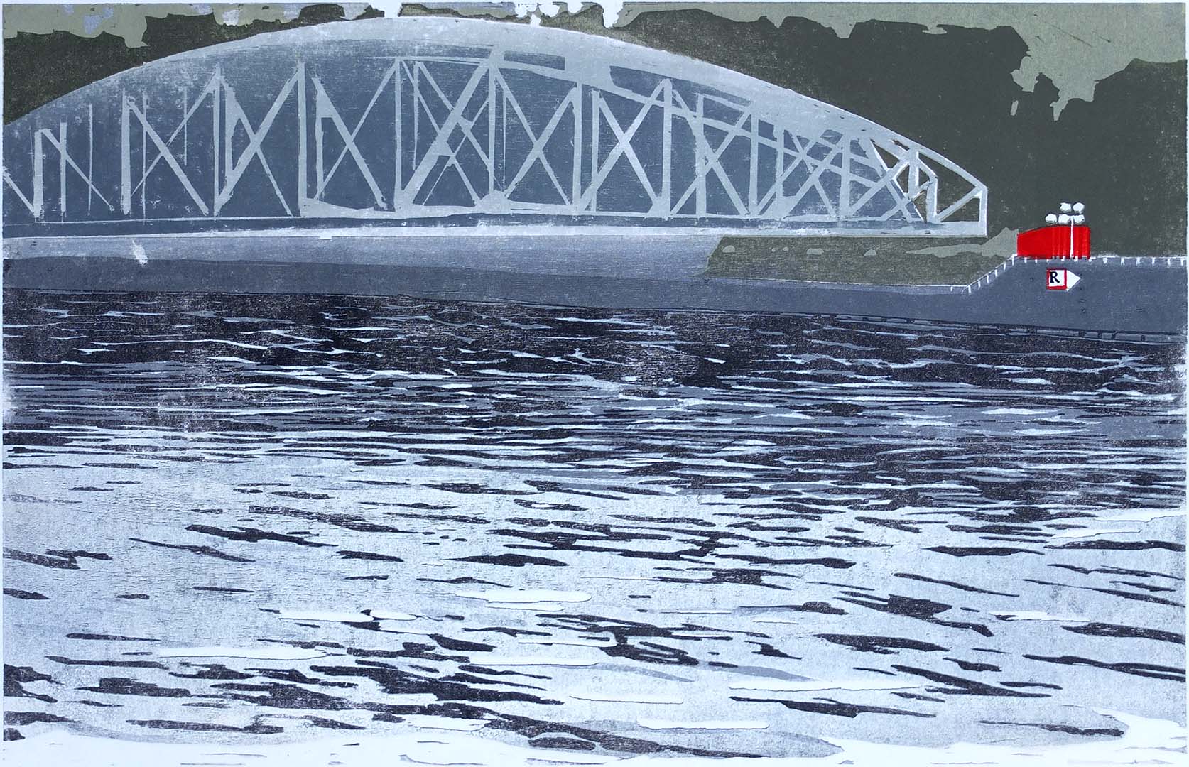 Hubbrücke · 2017 · Farbholzschnitt · 54 × 85 cm