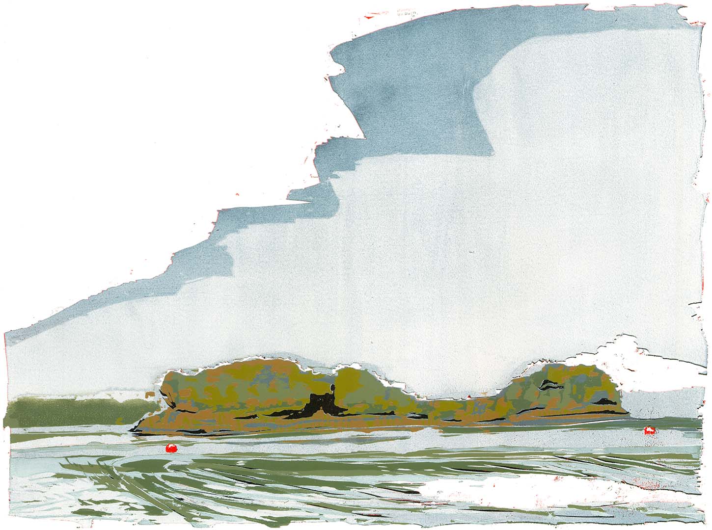 Fahrwasser · 2021 · Farbholzschnitt auf Büttenpapier · 54 × 83 cm