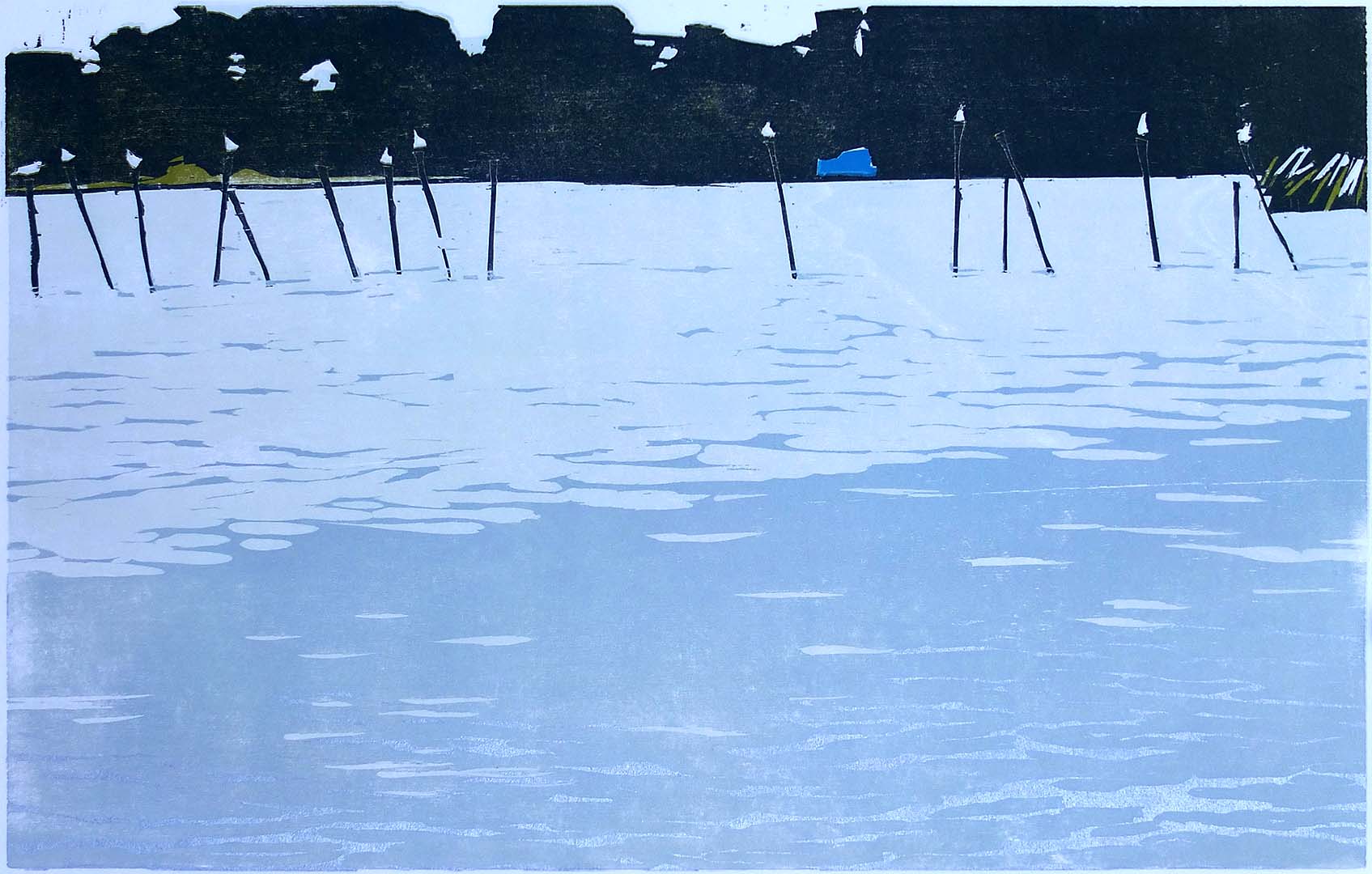 Muschelplantage · 2017 · Farbholzschnitt · 17 × 53 cm