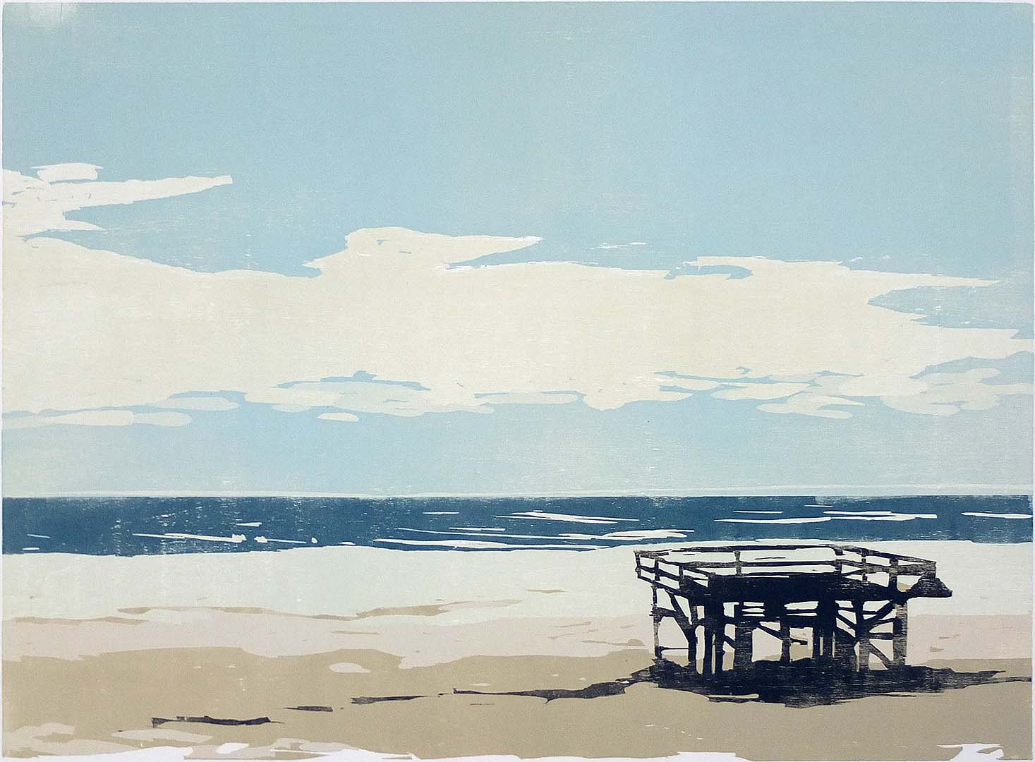 Strandgerüst · 2018 · Farbholzschnitt · 55 × 75 cm
