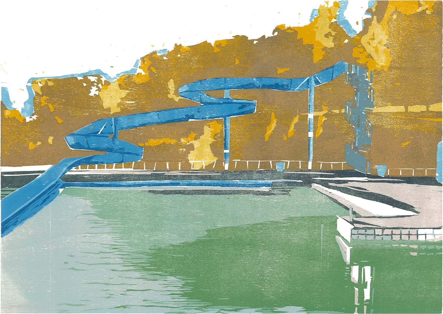 Wasserrutsche · 2016 · Farbholzschnitt · 49 × 69 cm
