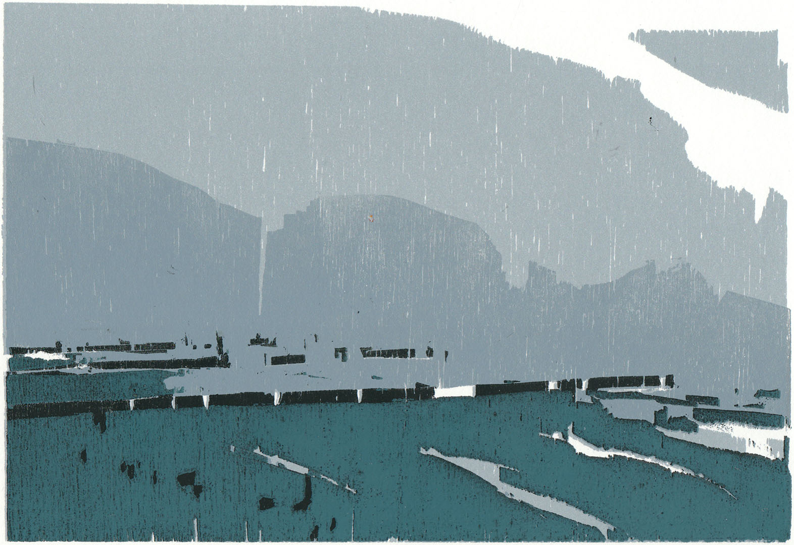 Wellenbrecher · 2017 · Farbholzschnitt · 15 × 22 cm