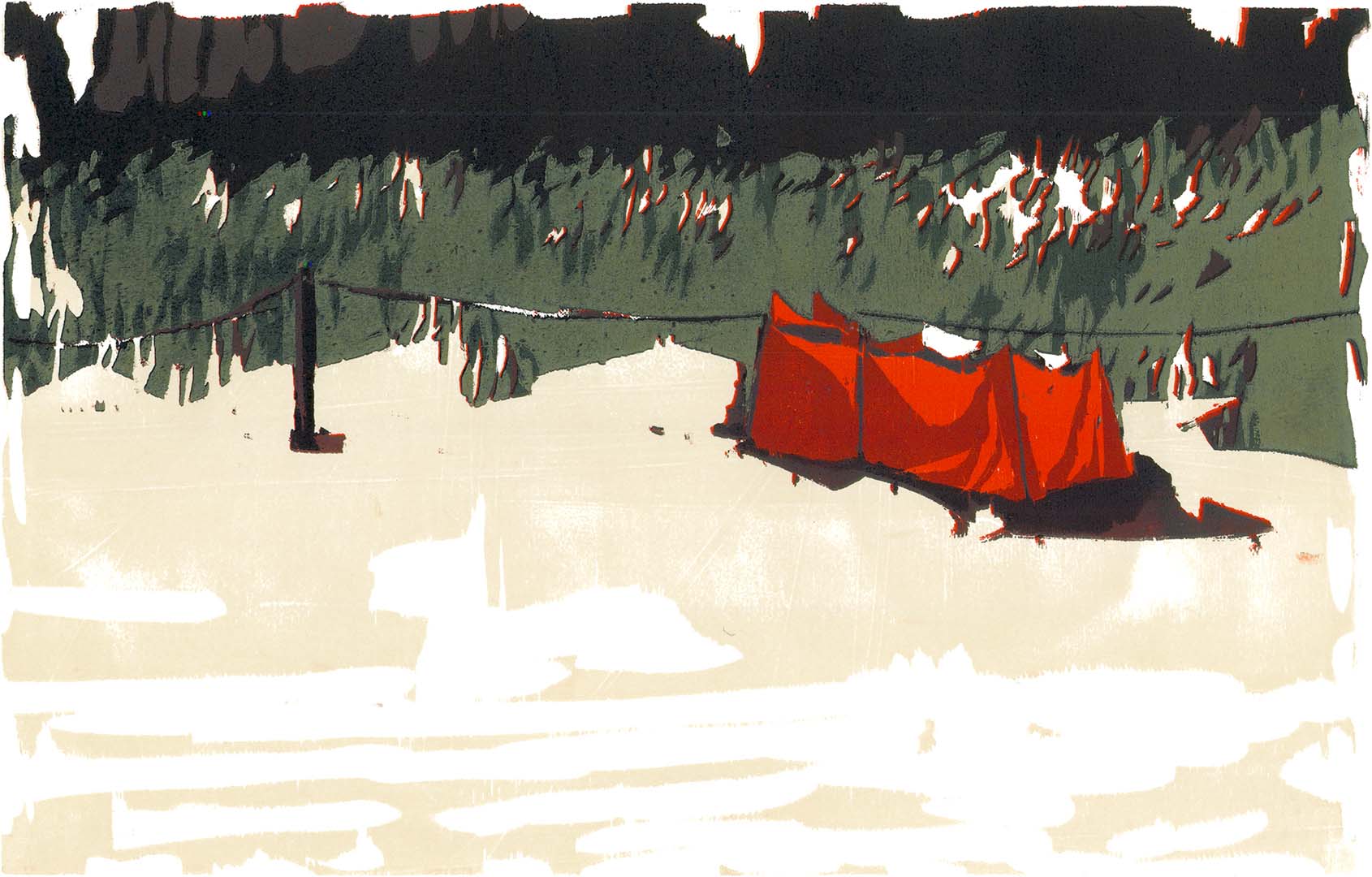 Strandbude · 2017 · Farbholzschnitt · 54 × 84 cm
